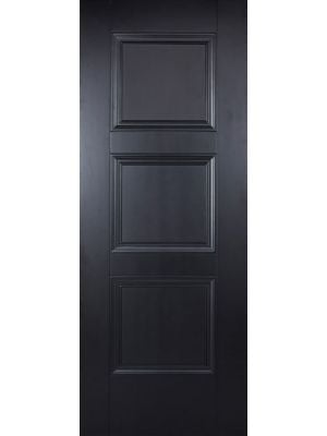 Traditional three panel black primed fire door featuring flat, recessed panels and rich, decorative mouldings. This stylish door is available in a range of sizes and matching models are also available including non-fire rated solid door and 3 light clear glazed door.