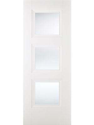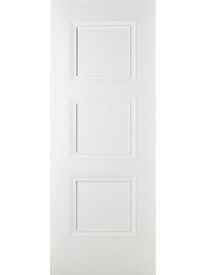 Traditional three panel white primed fire door featuring flat, recessed panels and rich, decorative mouldings. This stylish door is available in a range of sizes and matching models are also available including non-fire rated solid door and 3 light clear glazed door.