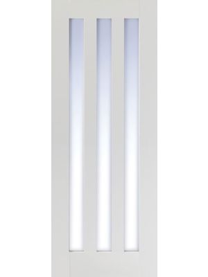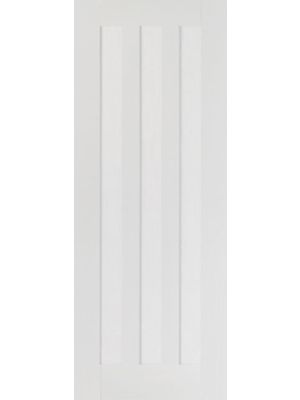 Contemporary interior oak FD30 rated fire door with three vertical, flat and recessed panels. Matching glazed and non-fire rated door available in white but also in unfinished and prefinished oak.