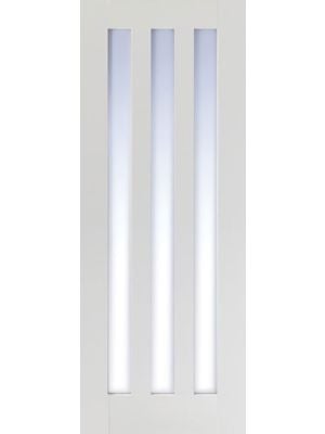 Modern interior oak door with three flat, recessed, vertical panels. Matching glazed and fire rated doors available in white, but also in oak unfinished/prefinished.
