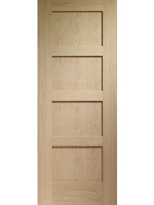 Glazed oak fire door in the popular Shaker design, including four panels of clear fire resistant glass. Wide range of matching doors available.