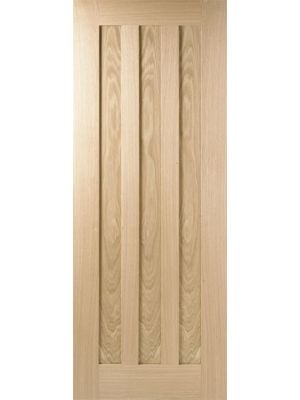 Prefinished glazed oak interior door with three vertical, obscured (frosted) glazed vision panels. Matching clear glazed doors and solid doors (Idaho) are available, both in unfinished and prefinished versions.