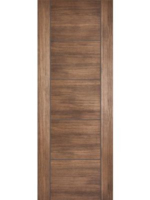 Laminated version of the contemporary glazed Vancouver Walnut door with a look and feel of a real veneer but with no colour variations. This fully finished door is available in a range of matching models including solid FD30 fire doors and non-fire rated doors.