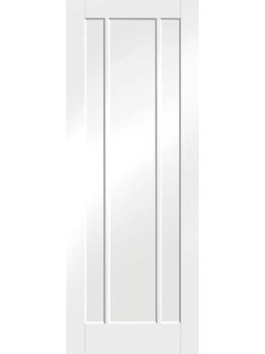 Classic Worcester white primed interior door with vertical clear glass panels. Matching solid, fire resistant and oak doors are also available.