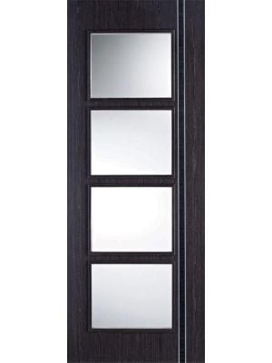 This contemporary internal fire door features unique dark coloured, man-made veneer and two vertical silver strips. It will make an ideal, contrasting design feature with white door casings, light colour walls or blend in with dark flooring or furniture. Matching non-fire rated door and glazed door are also available.